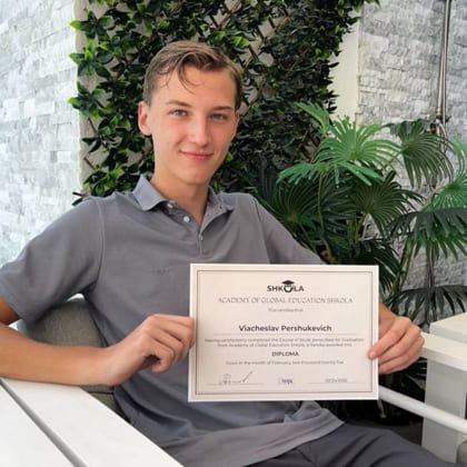He chose SHKOLA’s self-study format, which lets students move at their own pace while staying supported by curators and subject teachers. That flexibility made it possible to adjust to life in a new country and prepare intensively at the same time.